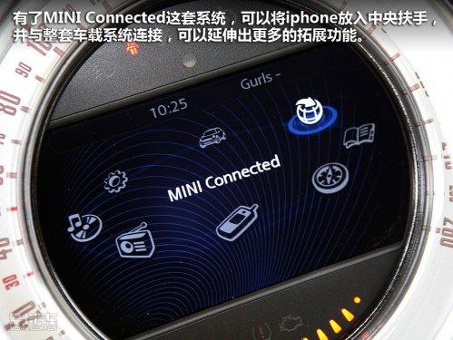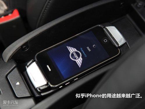 這套系統中整合了GPS導航、音響多媒體、車輛信息設置等諸多功能,最有特點的是其中MINIConnected這項功能,有了這套系統,你可以將自己的蘋果iphone放入中央扶手,并與整套車載系統連接,可以延伸出更多的拓展功能,在試駕過程中我們體驗了Web radio、谷歌地圖搜索等一系列創新功能,據說還可以接收用戶訂閱的RSS新聞。目前這套系統是否會裝備在進入國內的MINICountryman上我們還不得而知,但相信這種集成式的多媒體系統會是今后的發展趨勢。