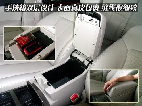 中央手扶箱同樣由真皮包裹,手扶箱體積適中,肘部的支撐十分到位,接觸感也很舒適,并采用了雙層的設(shè)計(jì),在實(shí)用性上有所增強(qiáng)。