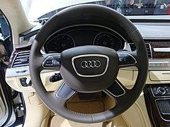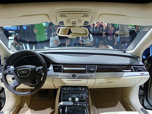 全新奧迪A8L車廂內部的另一項新穎配置為前副駕駛席座椅的背面還設置了一個較小的座椅。這個小座椅的座椅面角度可調節。此外在前排座椅的背面還設置了供后排乘客休息的腳托。