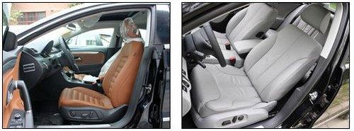 座椅方面同樣體現(xiàn)出了兩款車(chē)型不同的設(shè)計(jì)理念,CC豪華版的棕色波浪式座椅,看起來(lái)包裹性出色,側(cè)向給予的支持力也還算到位,如果您另對(duì)黑色座椅鐘愛(ài)尤佳,那么選裝Alcantara材質(zhì)拼裝的翻毛真皮座椅一定會(huì)是個(gè)更好的選擇。邁騰淺色的內(nèi)飾看起來(lái)更加厚重,偏向家用風(fēng)格,坐上去感覺(jué)包裹性一般,但真皮座椅質(zhì)地還算比較不錯(cuò)。