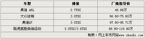 汽油對于社會的各個階層都是好東西,它既可以制作塑料制品,還是擁有汽車的家庭每天不可缺少的東西,并對其產生了過度依賴。但是大家可能都忘記的一樣可以替代它產品——柴油。隨著汽車技術的不斷發展,柴油的諸多缺點都被一一克服,其實不論是從售價低廉的方面還是從用于強勁動力的角度來看,如今搭載柴油發動機的汽車都擁有著不小的優勢。今天網上車市就為您帶來4款高端柴油車型推薦。