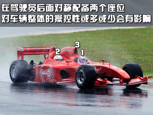 這款F1賽車采用了三座式設計,駕駛員的位置沒有變化,只是在駕駛員后面左右各安放了一個座位。坐在后面的乘客可以近距離感受F1賽車所帶來的極限駕駛樂趣,更可以清晰的看到F1賽車儀表盤上各項數據的狀況。