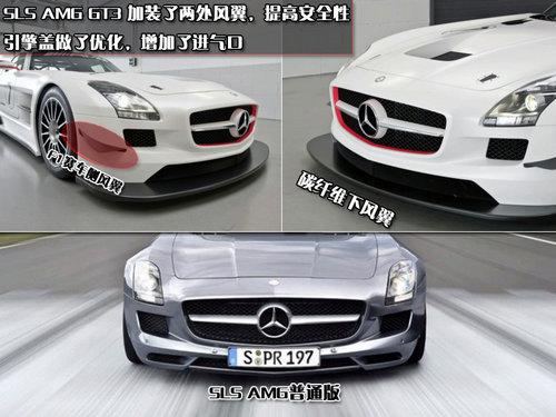 2010年4月,奔馳SLS AMG在北京國際車展榮耀發布,據悉將在年底之前引入國內。近日,奔馳又推出了一款街道賽車版SLS AMG車型SLS AMG GT3,宣布其歐洲售價為397460歐元,約合人民幣3500000。這比SLS AMG在歐洲的價格高了190000歐元左右,相當于兩部SLS AMG的價格。今天我們來對比一下它們之間到底有什么不同。