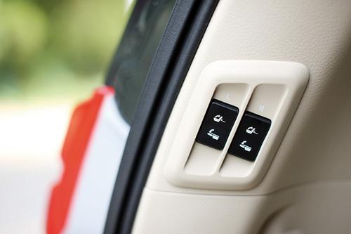 另一項與時俱進的變化是第三排座椅的收納方式。原先座椅折疊后分別掛在左右側窗內側,現在能夠完全藏入后備箱地板下,雖然地板因此抬高了一些,后備箱卻顯得更整潔,橫向空間也得以明顯增加。而且與進口版相比,它還加入了方便的電動折疊機構。當然和大多數同類車型一樣,普拉多第三排的頭頂空間并不寬裕,身材高大的乘客難免有些憋屈,不過由于第二排座椅可以前后移動,膝部空間倒是有充足的保障。除此之外,坐在這里完全沒有被怠慢的感覺,三點式安全帶、杯架和空調出風口一應俱全,甚至還有個220伏交流電源接口,使用筆記本電腦等電器會方便許多。