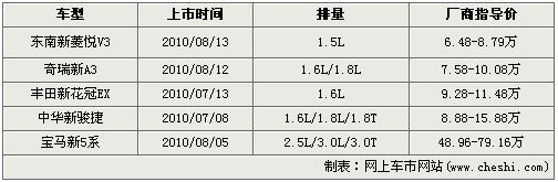 緊湊級型車在近期改款上市陣營中占用絕大部分的份額,其中包括東南汽車旗下V3菱悅、奇瑞新A3、豐田花冠EX以及中華駿捷。四款車型都屬于小改款車型,在原有車型核心技術不變的基礎上,外觀和配置方面做出改變求新意。寶馬全新5系是5款車中唯一一款換代產品,相比起老款車型,各個方面都有著長足的進步,尤其是軸距的加長,迎合了很多國內消費者的口味。