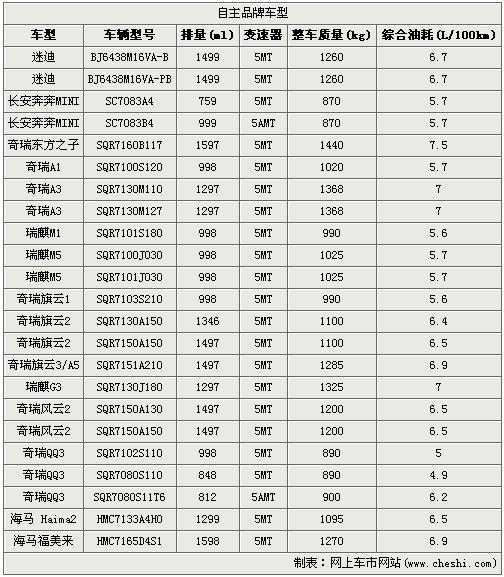 在自主品牌目錄中,完全沒有前兩個陣營中慘烈廝殺,成一邊倒局面,霸主就是奇瑞品牌。光是入選的車型就有11種,款型更是達到了17款,要知道自主品牌第二批名單一共才有23款車型。零星殘存的勢力分別由北汽、長安以及海馬三個品牌占據,其他品牌沒有動作。