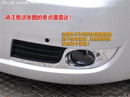 其實,除了大和優美外,帝豪EC8大器的外觀是我比較喜歡的,對于一個自主品牌車型可以設計成這樣,我認為很不錯了。同時設計者也考慮到由于這款車的車身尺寸比較大,因此在駕駛經過一些狹窄路段的時候可能會造成一些小剮蹭,因此帝豪EC8車型在前部也配備的到雷達系統,這樣你在駕駛的時候就可以更加方便的駛入一些狹小的路段而不用擔心刮損了。