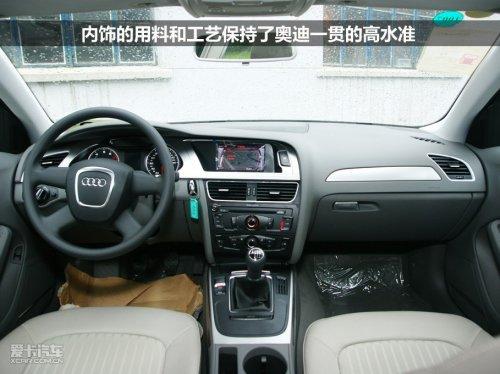 MMI多媒體影音導航系統也被閹割,排擋桿后面空空的塑料飾板顯得有一點點刺眼。不過音響系統與更高版本相比并無變化,而自動空調則取消了雙溫區劃分功能。不過無論是面板材質還是整體制造工藝,完全保留了奧迪嚴謹豪華的風格,質感強烈的同時裝配嚴絲合縫,旋鈕的阻尼力度也十分適中。