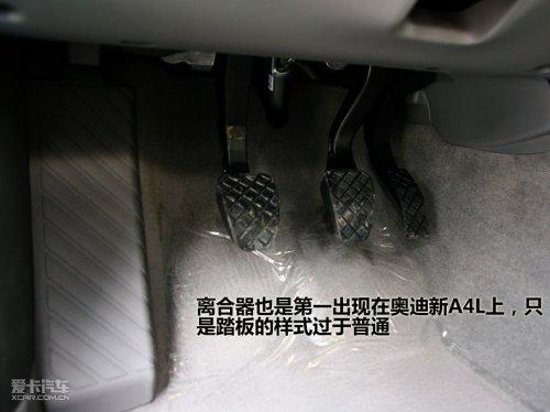 對于早已對新A4L十分熟悉的廣大車迷,見到一臺帶有離合器的車型一定會感覺到有點兒不太適應,這臺手動A4L政府公務版就給我這樣的感覺。主要是作為一輛奧迪,它的離合器、油門和剎車踏板的樣式實在有些過于普通了。由于沒有實際駕駛,在靜態情況輕踩離合器踏板,能感到反饋力并不十分沉重,應該比較易于日常駕駛。