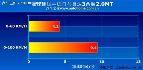 我們來看一下2.0L手動(dòng)擋馬自達(dá)3的實(shí)際性能表現(xiàn);0-100KM/h的加速時(shí)間為9.4秒,6擋手動(dòng)變速箱換擋順暢且擋位間隙很小,操作時(shí)手感很棒;不過9.4s的成績(jī)似乎沒有我們想象的出色,與福克斯、世嘉等同排量車型相當(dāng)。在緊急制動(dòng)的測(cè)試中,前懸掛面對(duì)較強(qiáng)的慣性表現(xiàn)不錯(cuò),重心轉(zhuǎn)移帶來的前傾現(xiàn)象不是很明顯,41.6米的剎車成績(jī)比較出色,5次下來距離差別不大。