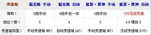 在變速箱的匹配方面,兩車的手動版車型均為5擋手動變速箱,而在自動擋車型方面,福克斯的4擋自動變速箱顯得比較落后,對油耗也有負面的影響,而翼神的CVT無極變速箱在經濟性方面表現更佳,但其線性的加速感覺不夠運動。