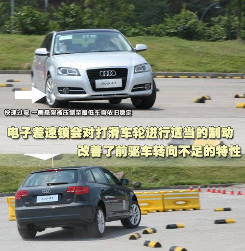 為了讓我們全方位體驗奧迪A3 Sportback的性能,奧迪公司特意安排了難度極高的場地試駕。奧迪A3 Sportback的前懸掛為麥弗遜減震滑柱總成帶下部三角形控制臂,鋁制副車架和管型穩定桿。