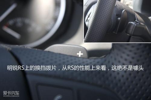 明銳RS采用了新的方向盤設計,廠商為RS車型搭載了一款全新的三幅方向盤,而除了由四幅變為三幅外,像多功能按鍵、鍍鉻裝飾件等都沒有變化。另外,作為運動車型,RS在方向盤后配備了換擋撥片。