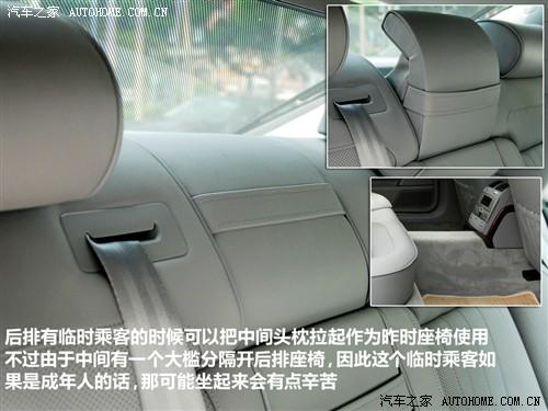 5座版車型后排中央可乘坐一名成員,靠背可以拉出一個碩大的頭枕為中間的乘員提供頸部的放松與安全保護,但是由于傳動軸的存在地板上的凸起過于嚴重,所舒適性會有折扣;中間扶手寬大厚實,這也是豪華行政級轎車的最基本要素。