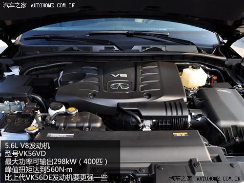 帶有直噴技術的5.6升V8發動機最大功率298kW,最大扭矩560N·m,在數據上比上代的VK56DE要強出不少,功率和扭矩分別增加了63kW和31N·m。7擋手自一體變速箱相比前面介紹的德國對手要少了一擋,不過我想7個前進擋也完全夠用了。