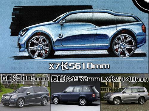 我們目前所獲得的X7的圖片僅僅是寶馬官方草圖和假象圖,不過這對于車型的未來展望已經(jīng)足夠了。寶馬X7將會(huì)基于成熟的X5平臺(tái)并且做一定修改,車身尺寸方面會(huì)比X5長760mm左右,那就是達(dá)到了驚人的5610mm。要知道目前最新款的奔馳GL550的車長不過才5095mm,寶馬X7全面超越奔馳GL級(jí)算得上是真正意義上的全尺寸SUV。
