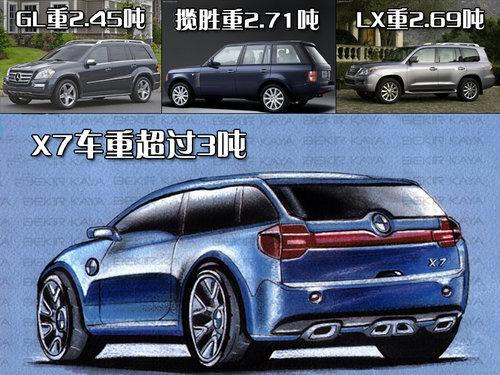 寶馬X7預(yù)計(jì)車重將超過3噸,同等級(jí)的競爭對手奔馳GL550整備質(zhì)量僅為2.5噸不到。如此看來GL級(jí)在寶馬X7面前也算是小弟了。據(jù)稱寶馬X7會(huì)融合X5和7系的多項(xiàng)設(shè)計(jì)元素,將X5的高性能越野能力和7系的豪華裝備完美結(jié)合。X7內(nèi)部空間會(huì)設(shè)置三排座椅,保證所有乘客都擁有極好的舒適性,而不是市面上一些SUV所謂的“假三排”。它的行李廂也是一大亮點(diǎn),容積可能達(dá)到3000升左右,奔馳GL550的這一數(shù)據(jù)是2300升。