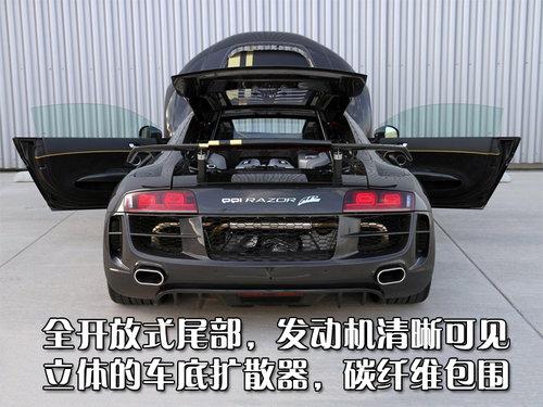 另外,RAZOR GTR-10還裝備了油壓可調懸掛,當需要時可提高車身45毫米,讓你下地庫不再成為難題。當然這款改裝版R8比普通版售價要高出很多,具體多少請自己想象吧。