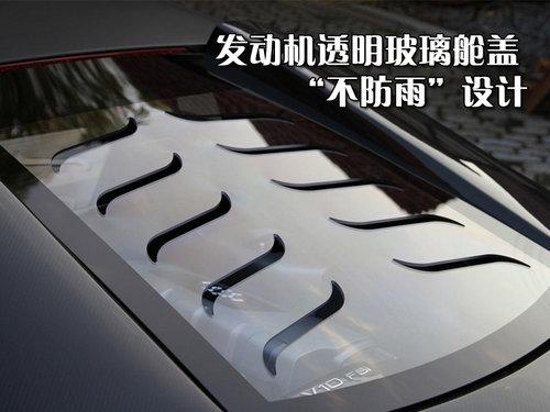 后部設計風格非常狂野,車尾中央放置牌照的區域已不見蹤影,而是換成了一塊蜂窩狀透氣網,發動機外圍的各種管道清晰可見。排氣系統經過了運動化改造,雙排氣管口徑碩大。后包圍同樣是采用碳纖維材料打造,加裝的車底擴散器極具立體感。