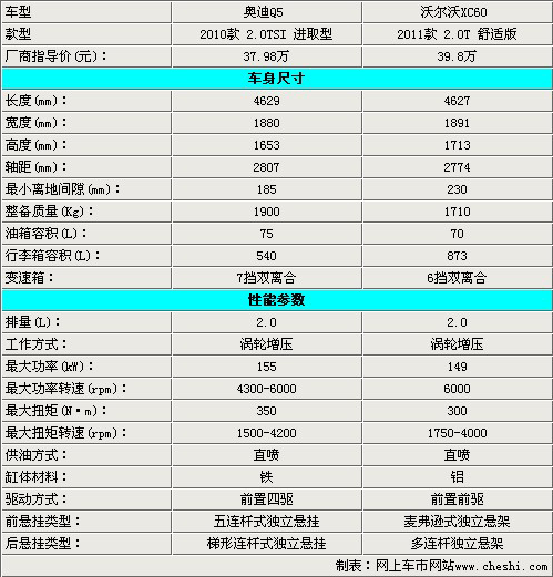 兩款車在車身尺寸上的差異并不很大,軸距方面也僅有20多mm的差距。而在動(dòng)力方面,奧迪Q5可以為使用者提供155KW的最大功率和350Nm的最大扭矩輸出,這一項(xiàng)要比XC60 149/300的表現(xiàn)要強(qiáng)出不少。另外,奧迪Q5全系車型均采用奧迪家族傳統(tǒng)4驅(qū)技術(shù)quattro,而XC60最低配版本僅為前驅(qū)。