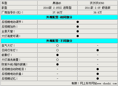 外觀方面,兩款車都配備了全景天窗,十分符合主流消費(fèi)需求。兩款車都未配備氙氣大燈和大燈清洗功能,而奧迪Q5可以選裝這兩項(xiàng)配置,XC60則不能。不過(guò)XC60配備了日間行車燈,而奧迪Q5這一標(biāo)志性的產(chǎn)物卻只能選配。