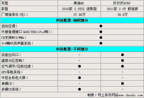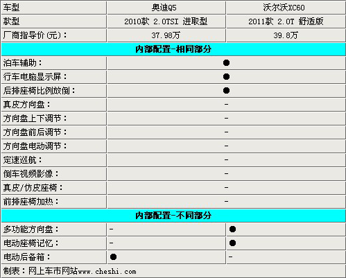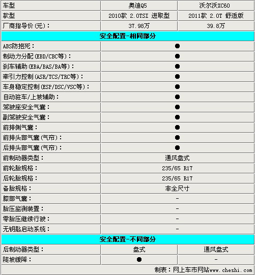 兩款車除了在安全方面的較量比較均衡以外,其他方面基本上都是奧迪Q5略勝一籌,主打安全牌的沃爾沃,有必要在其他配置方面多下工夫,就最低配而言,價格方面還是沒有什么優勢的。