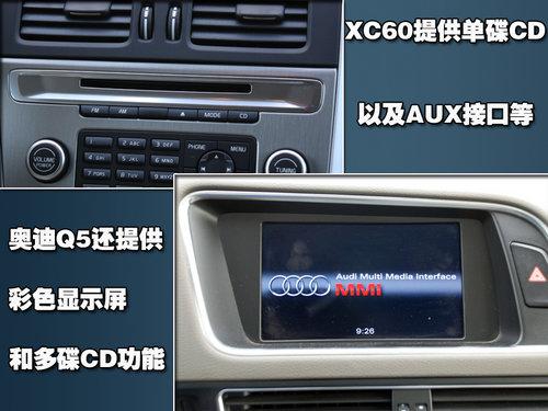 娛樂科技配置方面,兩款車都提供了大量的揚聲器,完全可以保證車內音質。AUX、USB等當下主流音頻接口兩車也都給予了配備,沃爾沃XC60配備了單碟CD,奧迪Q5則配備了多碟CD以及中控臺彩色大屏。