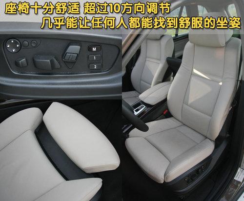 寶馬X5的座椅支撐性能非常好,坐上去感覺非常舒適。全方向的電動座椅可以提供給駕駛員及成員最佳的乘坐坐姿,讓旅途不再感到疲乏。后排空間足夠寬敞,后排出風口可以給后排乘客帶來最佳的車內溫度。