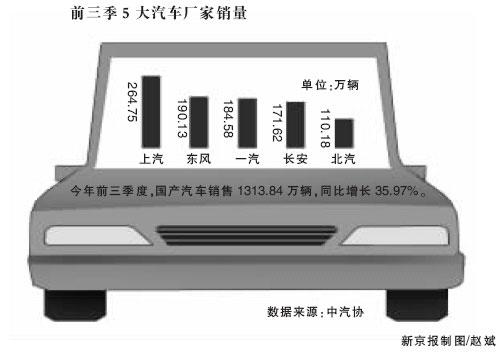 中國汽車工業協會昨日發布最新統計數據稱,今年前三季度,國產汽車產銷1308.27萬輛和1313.84萬輛,同比增長36.10%和35.97%,逼近去年全年水平。而全年銷量或將超過美國歷史最高銷量,達到1700萬輛,并在2015年實現2500萬輛產能規模。