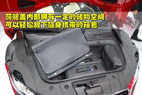 奧迪R8 4.2L敞篷版的前艙蓋內部擁有一定的儲物空間,但容積比較小,只能放下隨身攜帶的中小型箱包,大件的行李物品就無能為力了。雖然行李箱的空間比較小,但卻配備了一些隨車工具,而且周圍都采用軟質材料包裹,可以放置內部的磕磕碰碰。