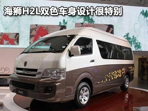 大海獅H2L是華晨金杯推出的全新H2平臺的首款車型,在外觀與空間結構、設計風格和工藝品質上均有重大突破,與現款的海獅及閣瑞斯商務車的造型完全不同,雙色車體設計相當的搶眼。