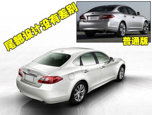英菲尼迪新款M35混合動力版車型的整個車身線條更加的優美,雖定位于商務轎車,但英菲尼迪的運動秉性還是被傳承下來,車尾除了在行李廂蓋上增加后擾流片外,后保險杠下方還有小導流板,拉后的C柱使車廂內的前后排空間都很寬裕。