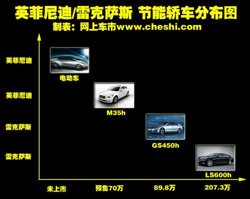 英菲尼迪與雷克薩斯雖然同屬日系豪華品牌,但雷克薩斯一直致力于油電混合動力車型的設計和研發,而且較早將混合動力車型引入國內,旗下的RX450h、GS460h和LS600hl等車型均得到了國內消費者的認可。不過雷克薩斯混合分別為SUV和D級豪華轎車,較高的售價(廠商指導價為94.1萬——207.3萬之間)則讓不少消費者望而怯步。而英菲尼迪即將引入的兩款新車級別相對較低,這種合理的市場定位不僅降低了消費者購車的門檻。