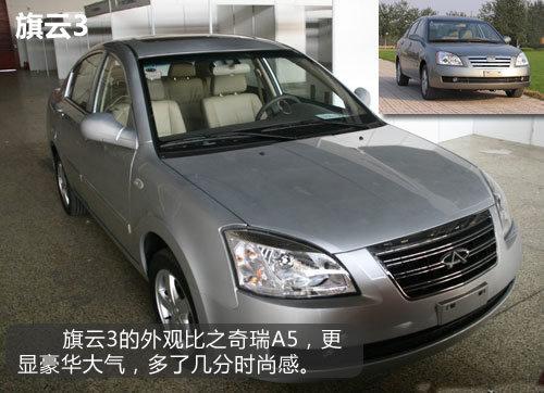 旗云3則是奇瑞A5的改款車型,變化稍微明顯一些:4條粗大的鍍鉻條變?yōu)榱藘奢検剑瓷先ジ烙^和時尚;尾部的三角形尾燈也變?yōu)榱恕疤旎[式”,雖然有點模仿嫌疑吧,但是總比老款的好看多了。