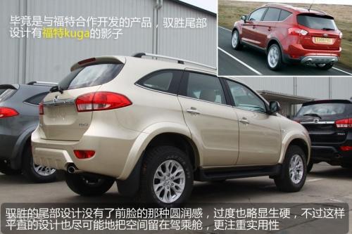 馭勝采用了非承載式車身,車架采用剛性強度大的梯型結構,前懸掛采用獨立雙叉臂結構,后懸架采用螺旋簧四連桿結構,能有效減緩路面震蕩,這樣的設計在越野性和舒適性上會有很好的平衡。