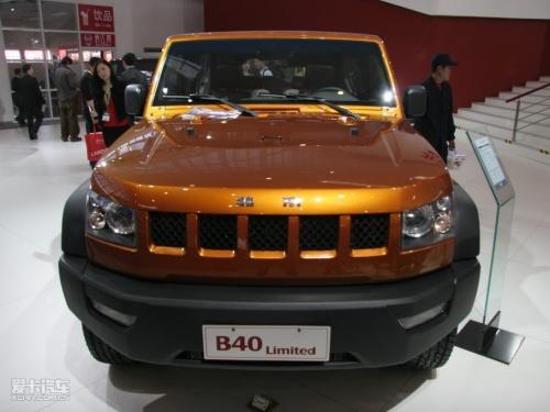 就我們目前了解到的情況看,B40車身尺寸為4200/1800/1750mm,軸距為2400mm,發動機采用2.4L直列四缸發動機,最大功率105kw(141馬力)/4800rpm,最高扭矩217N/3000-4000rpm。匹配5速手動變速箱,采用分時四驅,整體式橋,并且可選擇在后橋安裝限滑差速器,FRP可拆卸頂篷。