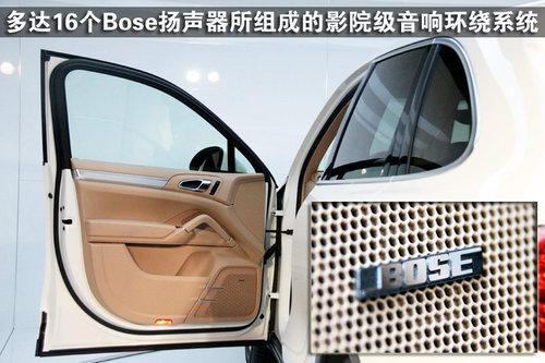 混動(dòng)卡宴除了在性能上的出色表現(xiàn)以外,整車在舒適娛樂系統(tǒng)上也可謂達(dá)到了至上水準(zhǔn),16個(gè)Bose揚(yáng)聲器所組成的環(huán)繞音響系統(tǒng),可以讓你感受到影院般的聽覺感受。