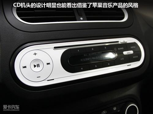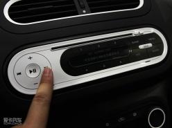 中控區域,出風口與音響、空調兩個功能區塊造型風格保持一致,簡約而富有整體感。特別是音響控制面板,白色的面板和同樣類似于蘋果音樂播放產品的風格,相信會吸引大批追求時尚的年輕人。另外雖然這款展車為MG3低配車型,但仍然安裝了自動空調。