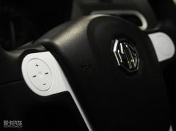 MG3的三幅方向盤設計非常出色,黑白顏色搭配十分年輕,只是采用硬質塑料材質手感欠佳。圓盤形的多功能按鈕與蘋果I-POD音樂播放器十分相似,正是當下年輕人最喜愛的設計風格。相比之下儀表的設計稍顯普通,液晶顯示面板的面積也比較小。
