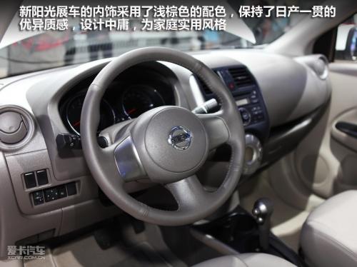 東風日產新陽光展車采用了一套淺棕色的內飾配色,在選材和用料上保持了日產一貫的優異質感。只是內飾整體造型風格比較中庸,顯然是遵循了家庭實用風格。但較為單一的色調和塑料感比較明顯的部分飾件還是容易讓人產生一些審美疲勞。