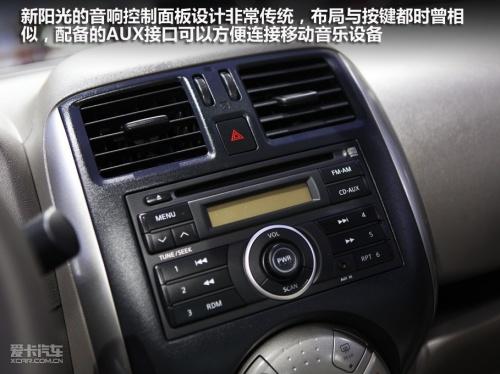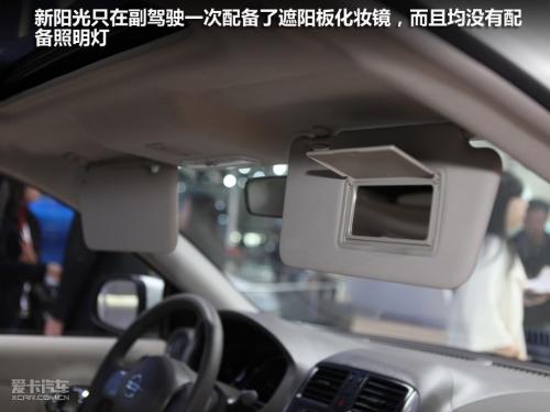 新陽光的音響控制面板設計十分傳統,布局與按鍵都與現在主流的日產車型一致,并沒有什么新鮮感。倒是圓形的自動空調控制面板設計的非常可愛,是新陽光內飾的一大亮點,而且操作起來沒有任何難度。新陽光只有副駕駛位置配備了遮陽板化妝鏡,而且沒有配備照明燈,讓人有些不解。