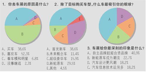 對(duì)廣州車展你感興趣嗎?車展上什么車最吸引你的眼球?本屆車展給你最深刻的印象是什么?上周,本報(bào)聯(lián)合新浪汽車進(jìn)行了調(diào)查,結(jié)果顯示,大部分的讀者對(duì)汽車有著濃厚的興趣,而且對(duì)新車以及新能源車的關(guān)注度遠(yuǎn)遠(yuǎn)超過了明星車模。