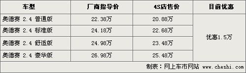 廣州本田旗下的MPV車型——奧德賽自引進國內市場以來,憑借著時尚的外觀和寬敞的內部空間取得了不錯的市場表現。隨著第八代雅閣、新飛度、鋒范的相繼上市,全新的奧德賽車型也即將引入國內生產。近日我們從廣州本田內部人士處了解到,目前銷售的奧德賽車型現已全部停產,新款車型將在8月份正式推出。與此同時根據網上車市價格檢測系統顯示,目前購買老款奧德賽車型可以得到1.5萬元的現金優惠。具體車型售價見下表: