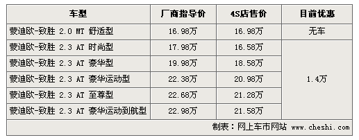 據(jù)4S店銷售人員介紹:目前蒙迪歐致勝全系優(yōu)惠1.4萬元,但現(xiàn)車較少,幾乎所有車型都需要預(yù)訂,優(yōu)惠幅度較之前有所回落。2.0車型目前不接受預(yù)訂,廠家不給予排產(chǎn)。主打車型為2.3升時(shí)尚型、豪華型、豪華運(yùn)動(dòng)型三款車型,預(yù)定車輛需等待1個(gè)月左右,2.3至尊型、豪華運(yùn)動(dòng)導(dǎo)航版預(yù)定需等一個(gè)半月時(shí)間。