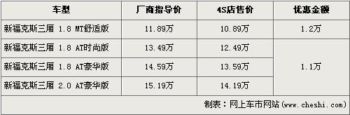 福克斯自06年8月份上市以來,其憑借動感前衛的外形以及動力充沛的性能配置博得了不少年輕時尚小齡青年的喜愛,使此車的銷量一直保持的比較穩定。近日據網上車市價格監測系統顯示:新款福克斯全系最高優惠1.2萬元,具體詳情請看下表: