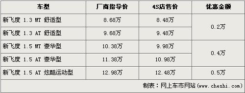 新飛度是廣州本田去年7月份上市的車型,其是廣州本田經(jīng)濟(jì)型轎車的主力軍,外形比起老款飛度更加前衛(wèi)更加時(shí)尚,創(chuàng)新的動感另類駕駛艙更是一大亮點(diǎn)。近日據(jù)網(wǎng)上車市網(wǎng)站價(jià)格監(jiān)測系統(tǒng)顯示,新飛度全系最高優(yōu)惠金額為5000元,具體詳情請看下表: