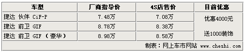 據4S店銷售人員介紹:目前捷達三款車型最高優惠可達4000元,較之前優惠幅度有所增加,并且捷達伙伴店內現車非常充足,相比之下捷達前衛現車不是非常多,顏色不是非常齊全。購捷達4S店還可送1000元裝飾,包括地膠、腳墊等最常用的裝飾。