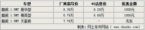 長城酷熊作為長城汽車在市場上推出的第三款轎車產品,憑借極具個性的造型和寬大的內部空間,使很多消費者都對其非常感興趣。新車價格分別為豪華型6.39萬元、精英型6.79萬元,天窗版7.79萬元。近日,網上車市網站了解到,長城汽車4S店處的天窗版酷熊仍然是有價無車的狀態,其他兩款車型有現車銷售,可以給出千元的優惠。具體詳情如下:
