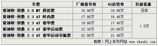 據(jù)4S店銷售人員介紹:目前蒙迪歐致勝全系優(yōu)惠1.5萬元,現(xiàn)車較充足,但顏色不是非常齊全,只有銀色、灰色、黑色現(xiàn)車。如預定需等10天至20天左右,現(xiàn)車到店時間較短。2.0車型目前不接受預訂,廠家不給予排產(chǎn),2.3升至尊版車型目前也已停產(chǎn),請用戶根據(jù)自己的需求選擇車輛。