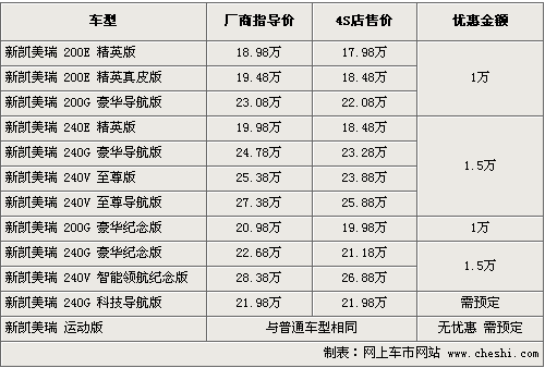 據4S店銷售人員介紹,凱美瑞在9月份推出了限量版兩款車型,其中包括了運動版和紀念版,運動版全系可以免費升級運動套件。如果夠買這款車的話需要提前預訂,價格和普通車型相同。車價方面優惠幅度在1萬元-1.5萬元之間,入門級車型優惠后也跌破了18萬元。